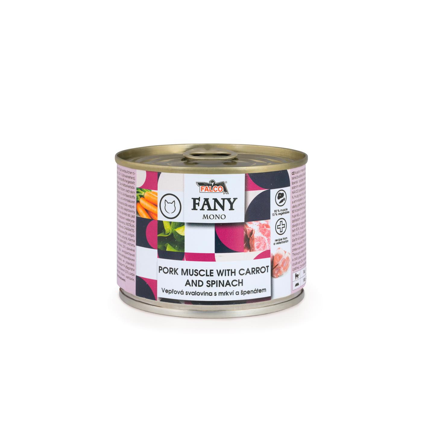 Detailní popis FANY MONO 200g vepřová svalovina s mrkví a špenátem
