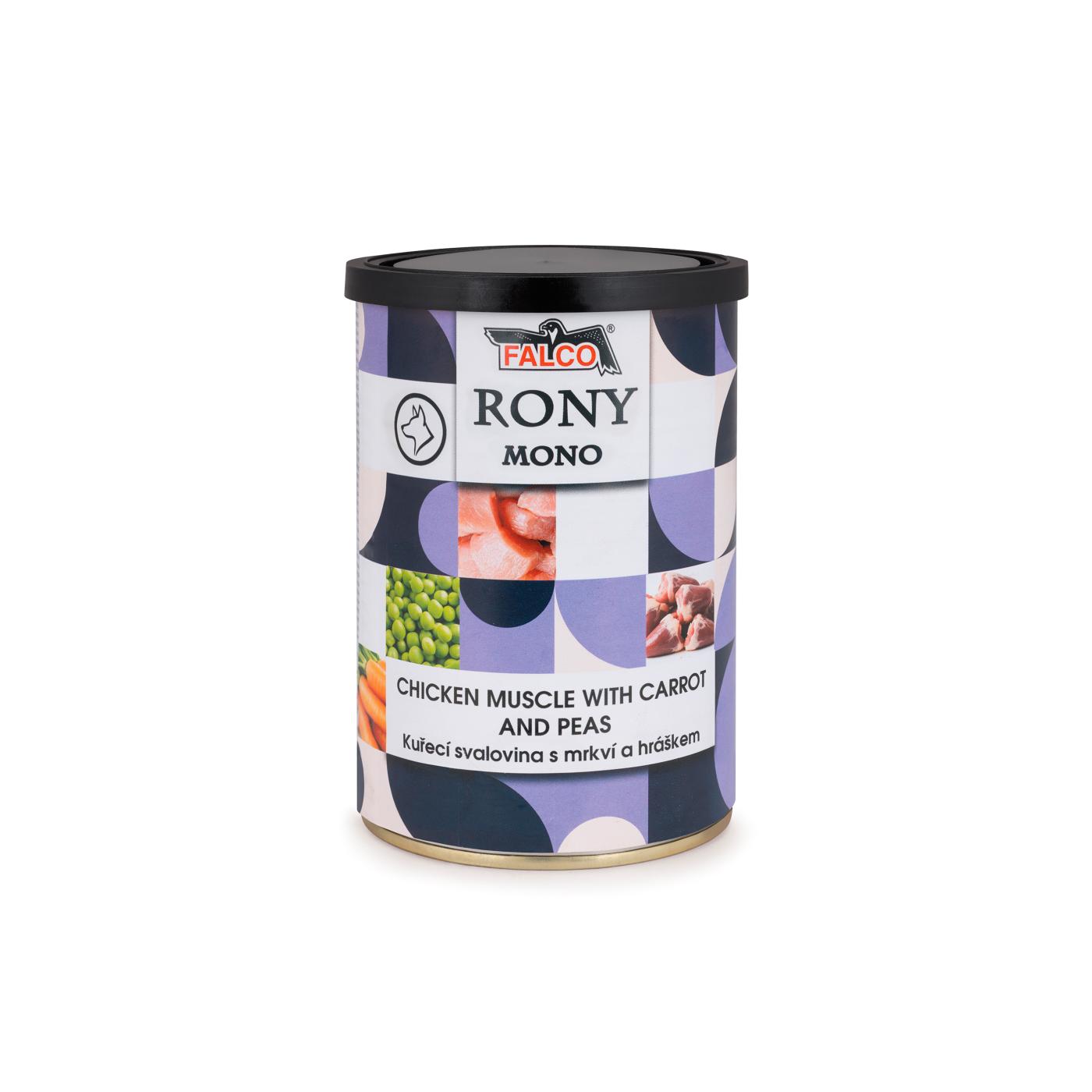 Detailní popis RONY MONO 400g kuřecí svalovina s mrkví a hráškem